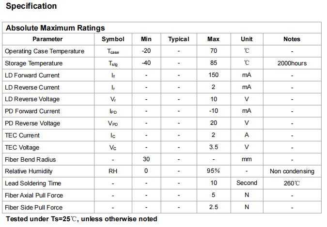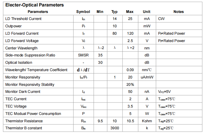 TLT-DFB-1310-10-SM 激光模塊采用平面結(jié)構(gòu),芯片安裝在載板上。高功率芯片封裝在無環(huán)氧樹脂、無助焊劑的 14 引腳蝶形封裝中,并配備熱敏電阻、熱電制冷器和監(jiān)測(cè)二極管。